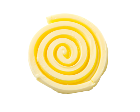 Cross section of a swirled yellow and white pastry isolated on transparent background.