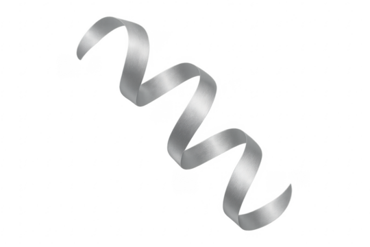 Bright red textured ribbon unrolling from a spool in a dynamic spiral shape isolated on transparent background