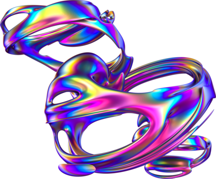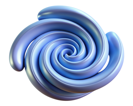 Abstract glass swirl shape with orange and blue colors, cut out transparent