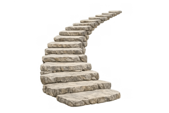 White spiral stairs curving on transparent background