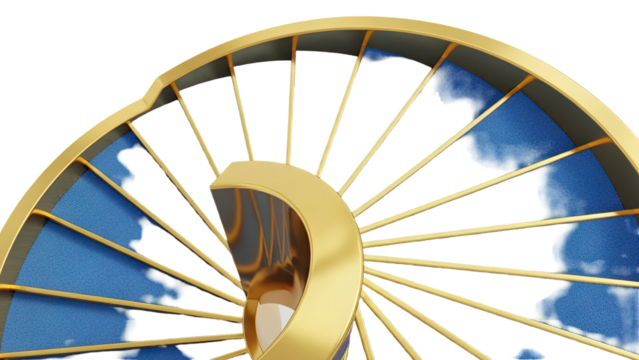 Golden Spiral Staircase with Cloudy Sky Background