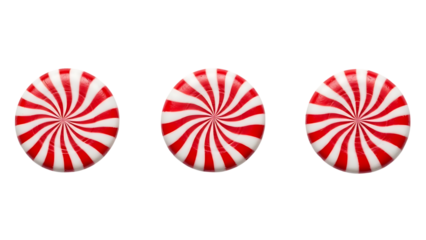 Three Round Red and White Peppermint Candies Isolated on White Background