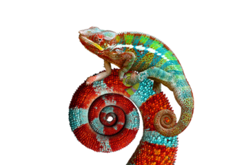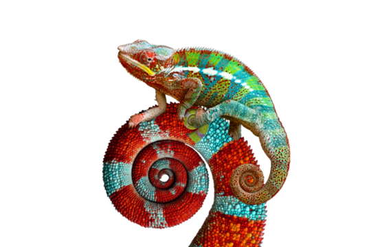 Textured chameleon with spiraled tail detailed scales and focused gaze
