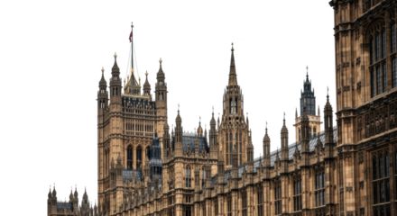 Gothic architecture of the Palace of Westminster with intricate details and spires building