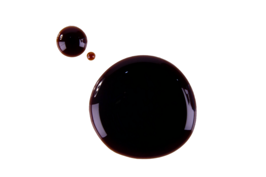 spilled, splashes soybean sauce isolated on white, transparent background. png image