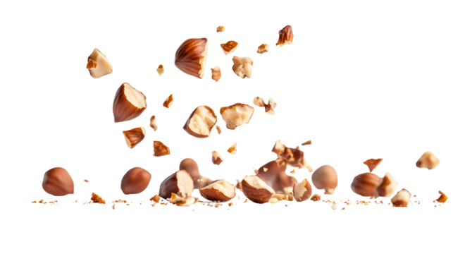 Dynamic image of chocolate pieces shattering in midair, showcasing the rich texture and tempting appeal of the confectionery treat.