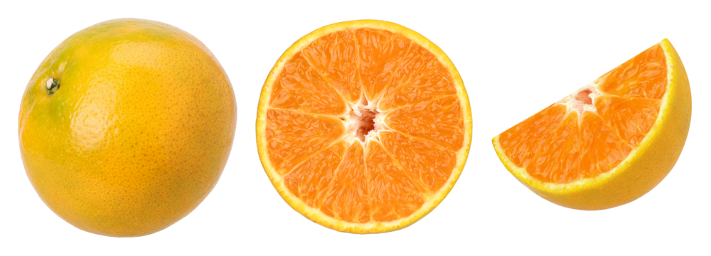Orange fruit and slices isolated, transparent PNG, PNG format, This is a photo taken by a camera, not an AI-generated image