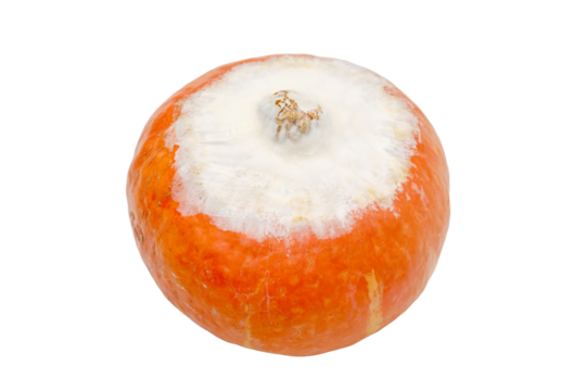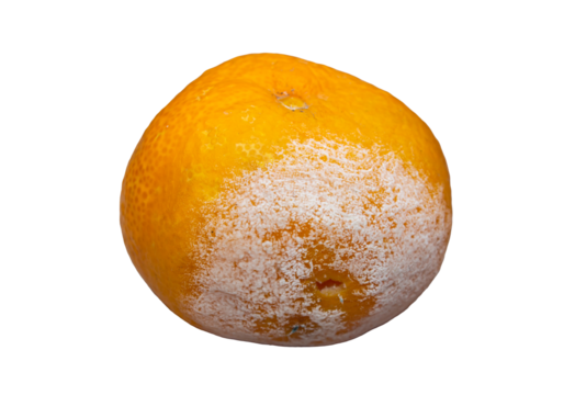 Moldy mandarin fruit on a transparent background. Tangerine png.