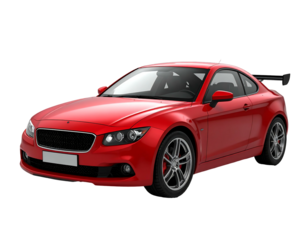 A vibrant red race car with a yellow spoiler in a cartoon style on transparent background