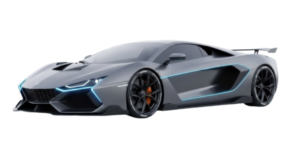 Sleek gray futuristic sports car isolated PNG on transparent background, modern vehicle design for automotive and technology projects