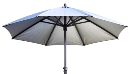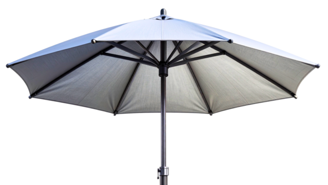 An open gray patio umbrella with a dark central pole, isolated on transparent background