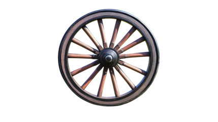 Antique wooden wheel on a transparent background for easy editing.
