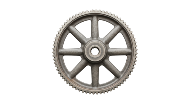Large industrial metal gear wheel isolated on white background visualized beautifully showing gear, cog, cogwheel with
