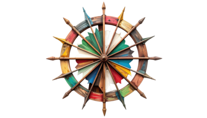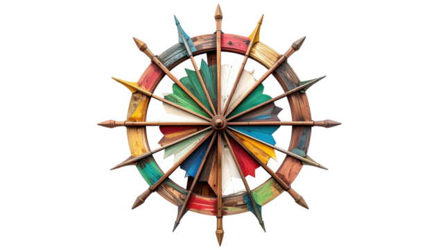 Wagon wheel silhouette with spokes and rim, representing vintage transport, history, tradition, and rural journeys