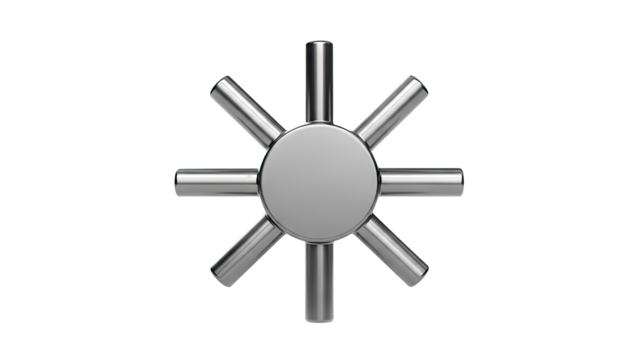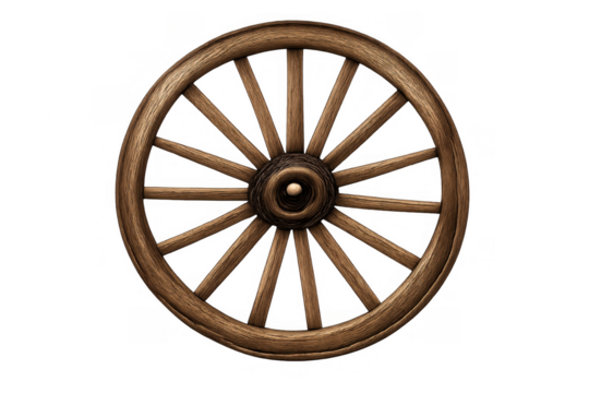 Vintage wooden ship steering wheel, with brass accents and dark polished finish, cutout, PNG isolated on white or transparent background