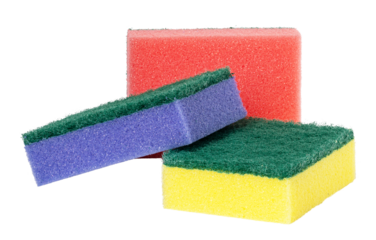 Colorful sponge cleaning supplies kitchen product home care isolated on transparent background, png