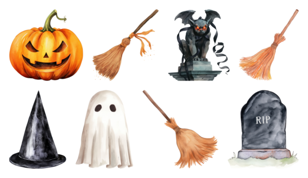 Halloween 2025 Themed Graphic with Spooky Ghosts, Jack-o'-Lanterns, and Flying Bats for Holiday Celebration. isolated on transparent background. Transparent Object PNG