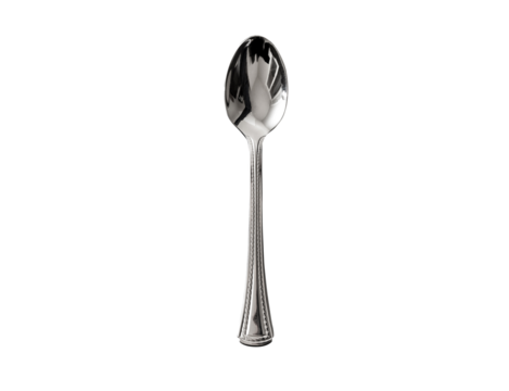 Silver spoon. Isolated. Closeup. 3d illustration. Stainless steel utensil. Tableware.