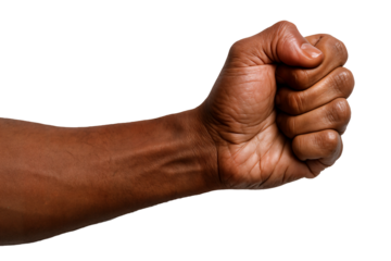 Close-up of a clenched fist of a dark-skinned male, symbolizing strength and determination.