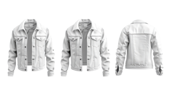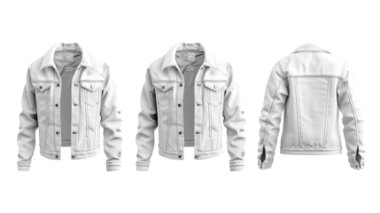 White jeans jacket front and back view on transparent background