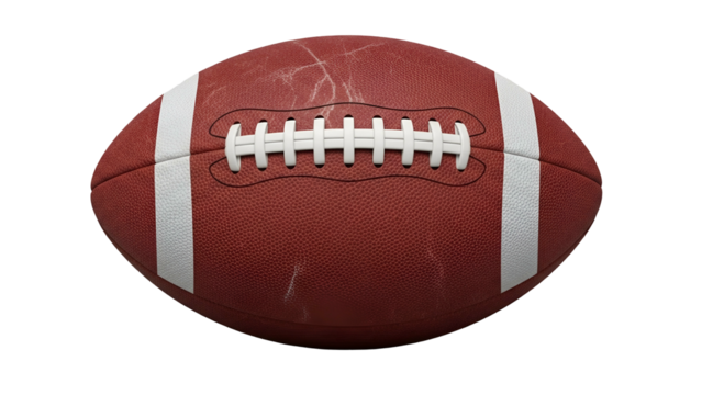 American Football in Close-Up on Transparent Background with White Stripes and Laces