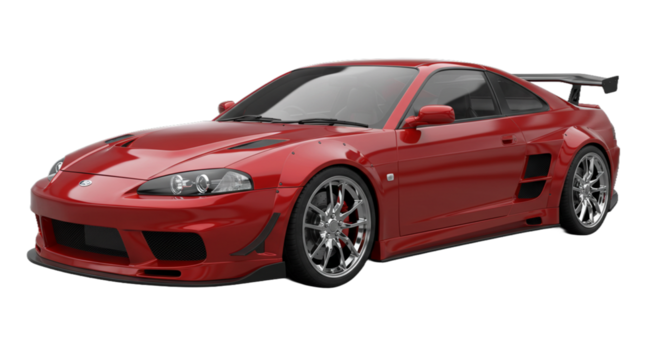 Sleek red sports car isolated on white background, showcasing modern design and elegance, perfect for automotive publications and advertising.
