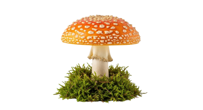 Transparent botanical illustration of whimsical orange-spotted mushrooms