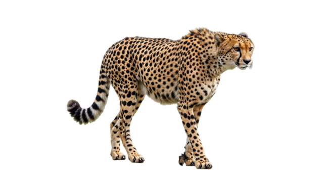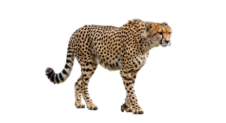 Cheetah in alert standing position with detailed spotted fur perfect for animal branding wildlife study fast predator concept or nature education visuals