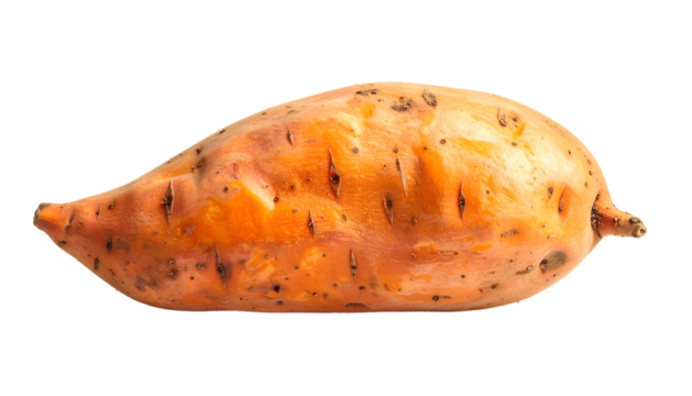 An isolated, textured, orange-brown root vegetable with a light gradient and natural imperfections