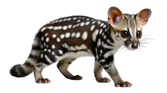 Striking Genet: A captivating close-up of a Genet, showcasing its distinctive spotted coat, captivating eyes, and graceful form, capturing a moment of elegance.