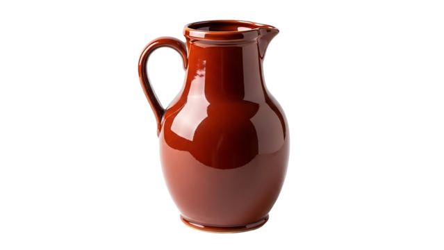 Ceramic pitcher with handle and spout on black background pottery vessel, Isolated On Png Transparent Background