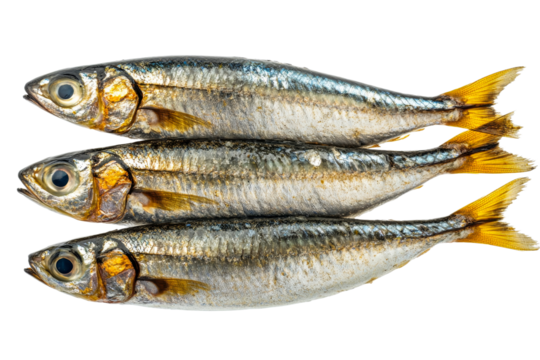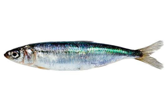 Single fresh silver sprat fish isolated on transparent background, perfect for food or fishing related designs