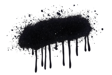 Black spray paint splatter forming a semicircle on a transparent background for artistic or creative design projects