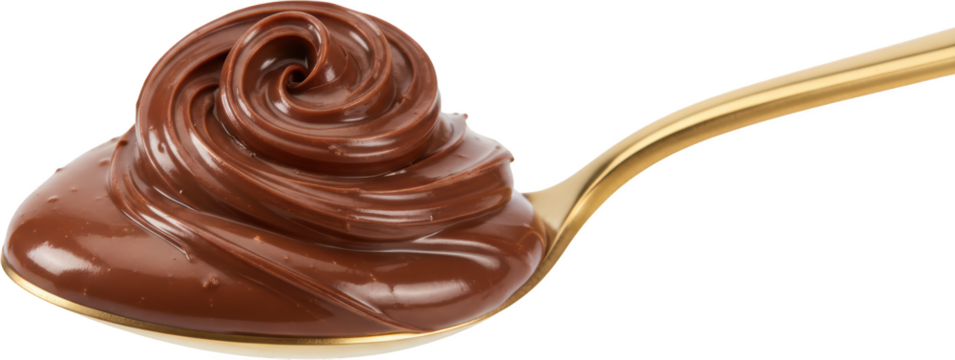Rich Dark Chocolate Hazelnut Spread Elegantly Swirled Atop A Gleaming Golden Spoon With A Stark Transparent Background Creamy Sweet Dessert Confectionery Food