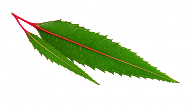 Green leaf serrated edge elongated shape vibrant color natural texture isolated botanical fresh healthy detailed vein closeup evokes calmness and vitality perfect for nature themes