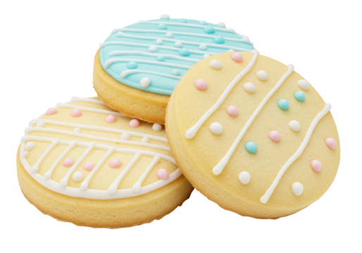 Isolated Decorated Easter Cookies with Pastel Sprinkles for Holiday Celebration Desserts