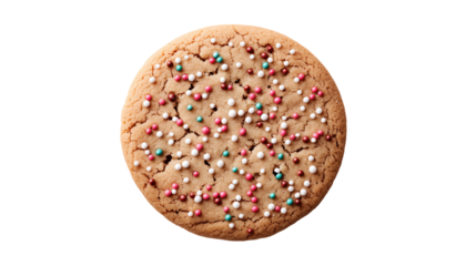 Cookie with colorful sprinkles, top view on a white isolated background.
