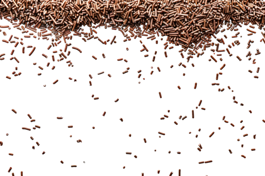 Chocolate frosting swirls on transparent background with colored sprinkles