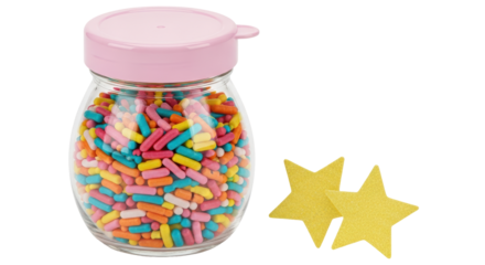 Colorful candy sprinkles falling against a transparent background, creating a vibrant and festive backdrop for confectionery projects