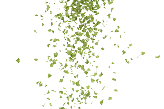 Falling Green Herb: Captured from above, a cascade of fresh, chopped green herbs gracefully descends, showcasing the vibrant color and delicate texture.