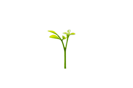 A young green plant sprout growing from soil, isolated on transparent background
