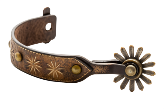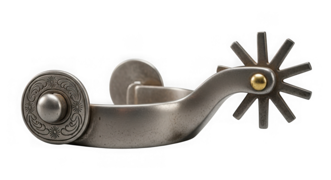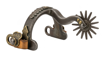 Western Cowboy Spur with Star Rowel and Decorative Metalwork isolated on a transparent background horse riding