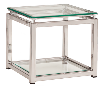 Modern silver metal frame two tier glass end table isolated on transparent background