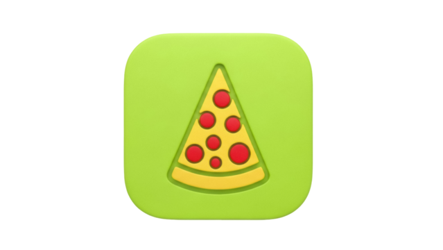 Green square pizza slice icon PNG isolated on transparent background, food symbol for restaurant menu and mobile app design