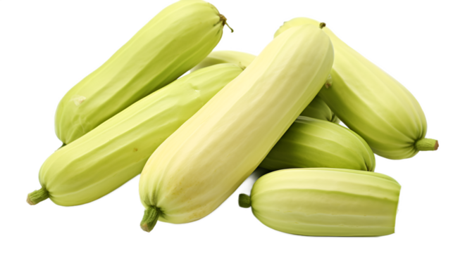 Three fresh green chayote squashes isolated against a clean background, ready for culinary delights