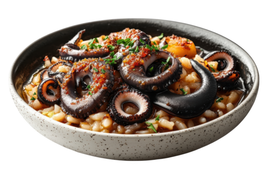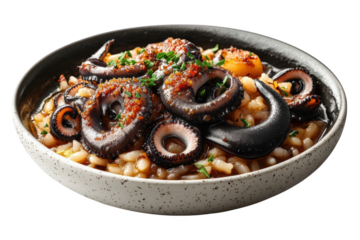 Risotto nero with squid ink, PNG isolated on transparent background, white background.