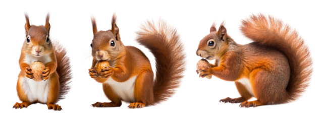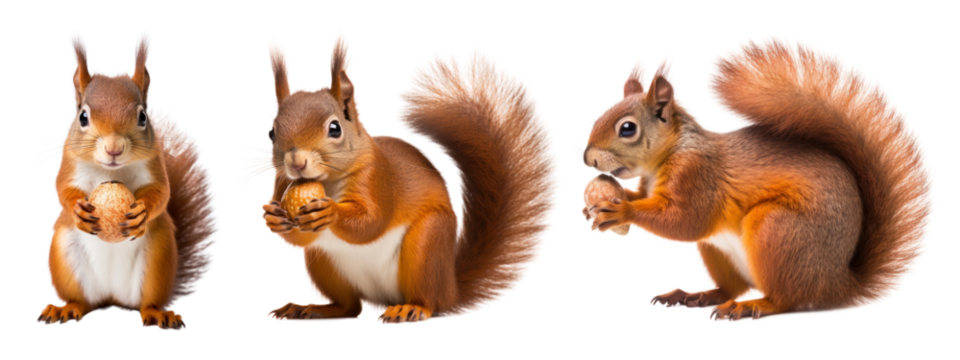 Various squirrels in different poses, charming woodland animals isolated on transparent background, perfect for wildlife-themed compositions