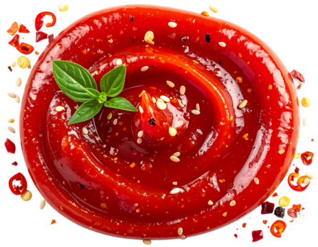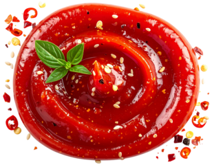 Red tomato paste sauce smear on transparent background