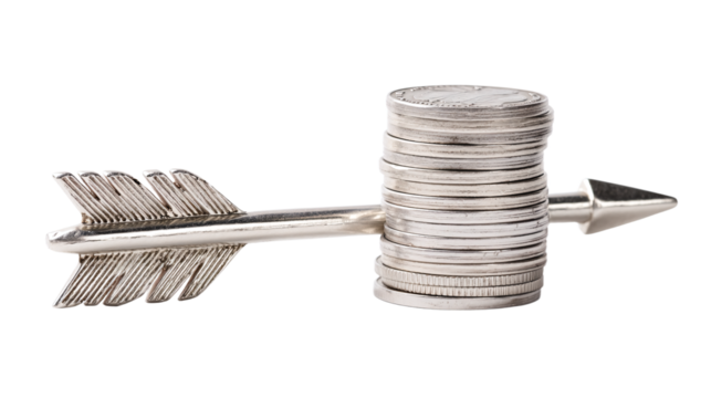 A stack of silver coins with a man on the front. The coins are piled on top of each other