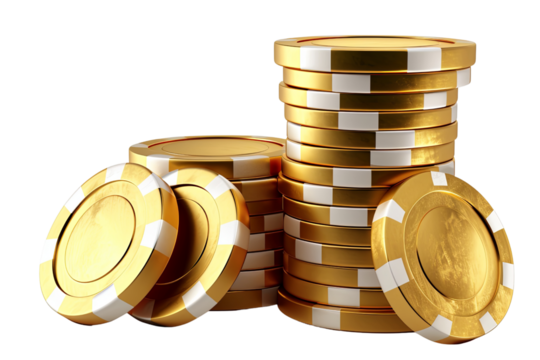 Stack of golden casino chips on a transparent background, representing wealth, gambling, and high stakes Concept of luxury, success, and winning